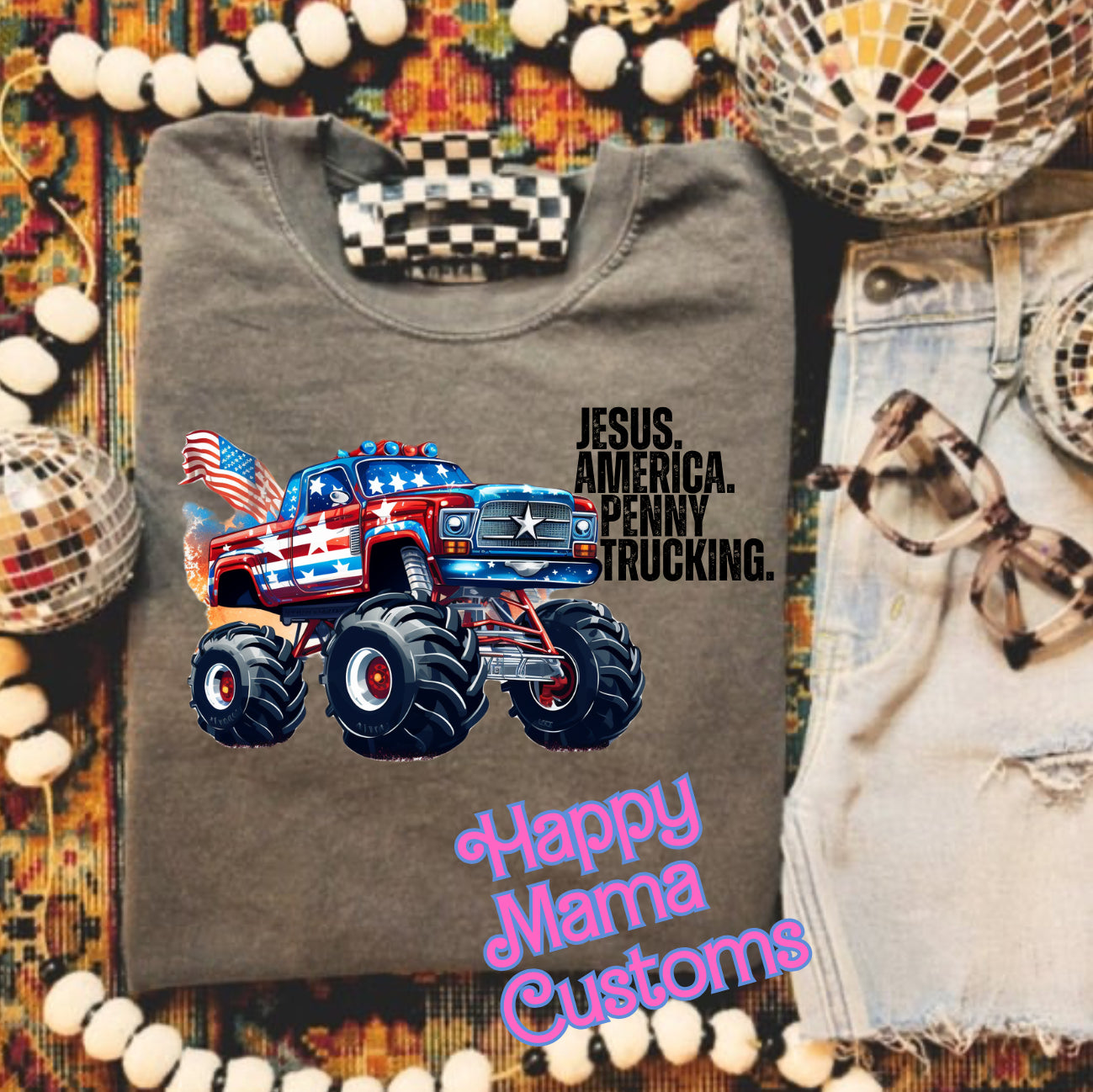 Penny trucking-Jesus, America, penny trucking *Comfort Colors*