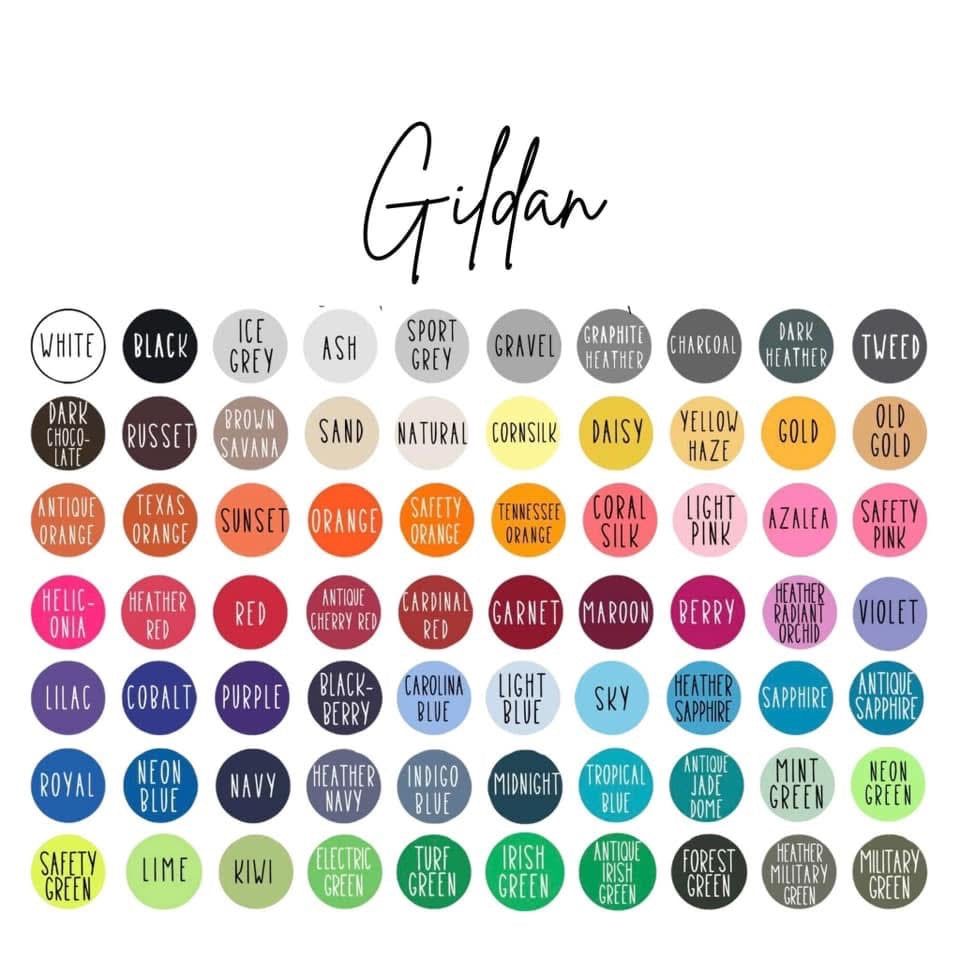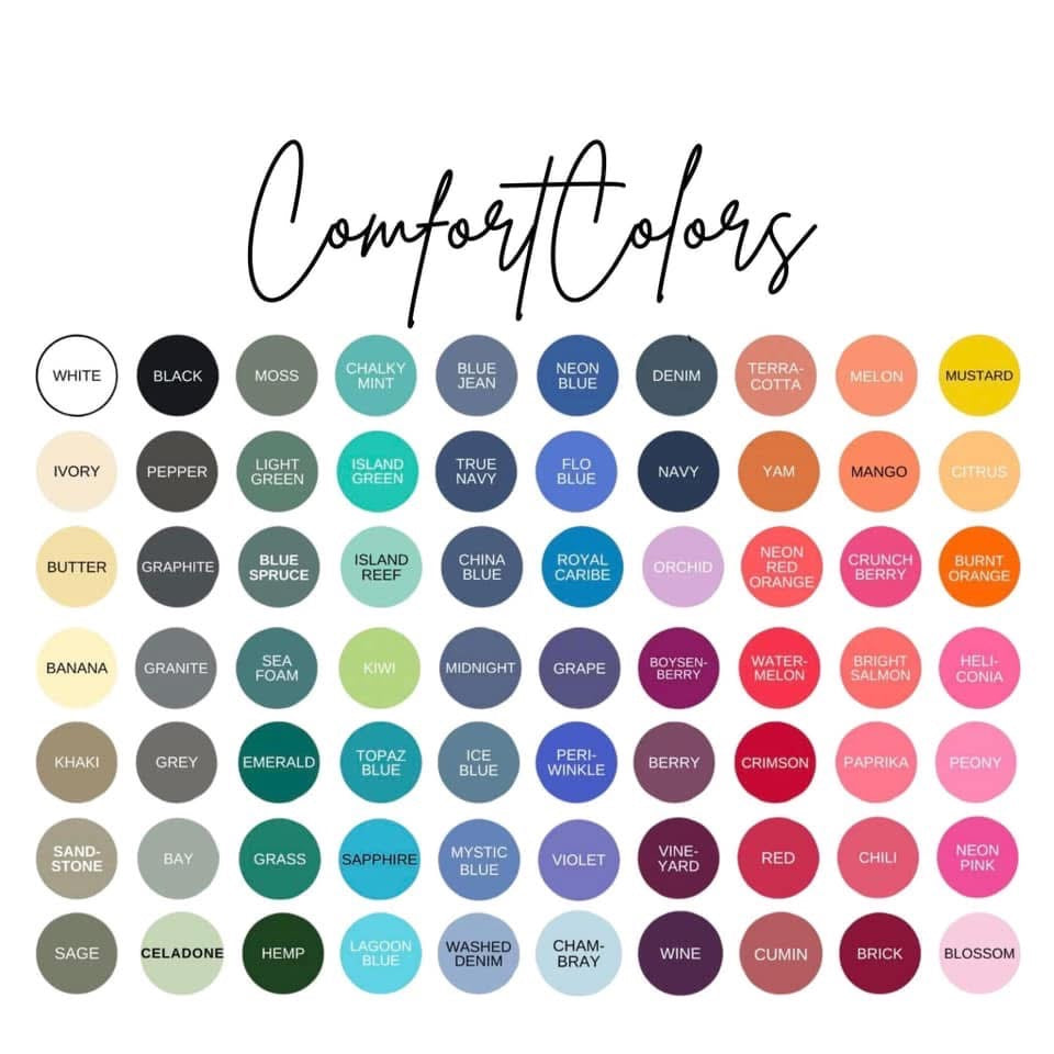 Choose your Gildan tee color or any of the comfort color options in the notes section at checkout as well as kid names.